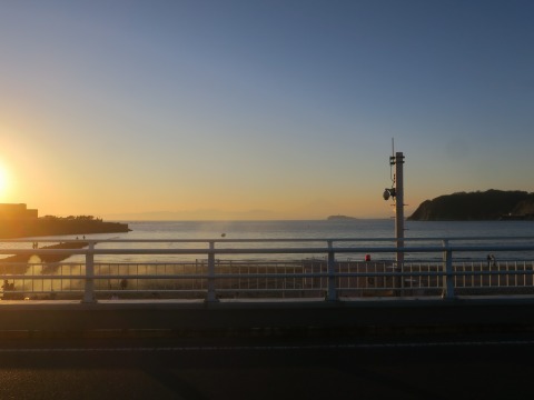 16:01 逗子海岸 端折ったね。 約2時間弱。 ルートとして楽しくはないからね。 大磯から国道134号線に入りひたすら東進。 逗子海岸まで戻ってきました。 まあ、週末夕方の国道134号線は渋滞してますわ。 それでも大磯〜江ノ島までの間は片側2車線なので、まだマシ。 江ノ島から東の鎌倉〜逗子は片側1車線なので、バイクでもかなりペースが落ちます。 逗子海岸に到着する頃には日がかなり傾いて水平線近くはオレンジ色。 もうすぐ日没。 冬至も近いです。 |