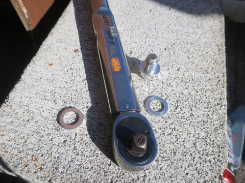 10:41 トルクレンチを使って トルクレンチを使ってドレンボルトを締めていきます。 締め付けトルクは、マニュアルに合わせて 24 N・m。 後から確認したら、武川のドレンボルトはアルミ製と言うこともあってか武川の推奨は 20N・mでした。(汗) もう、締めちゃったからね。 手遅れ。(笑) |