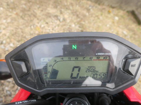10:58 暖気 オイルを入れたらちょっと暖機して放置します。 ここで走行距離計の写真を撮るのを忘れていたことに気付いて撮影。 ここまでの走行距離は 2,606 km。 前回が、今年の2月の初旬でしたので、約11箇月のインターバルですが、その間に走った距離は 830km。 よく走りました。 でもないし、 あんまり走ってないですね。 でもないし。 「ああ、そうですか。」と言った走行距離。 |