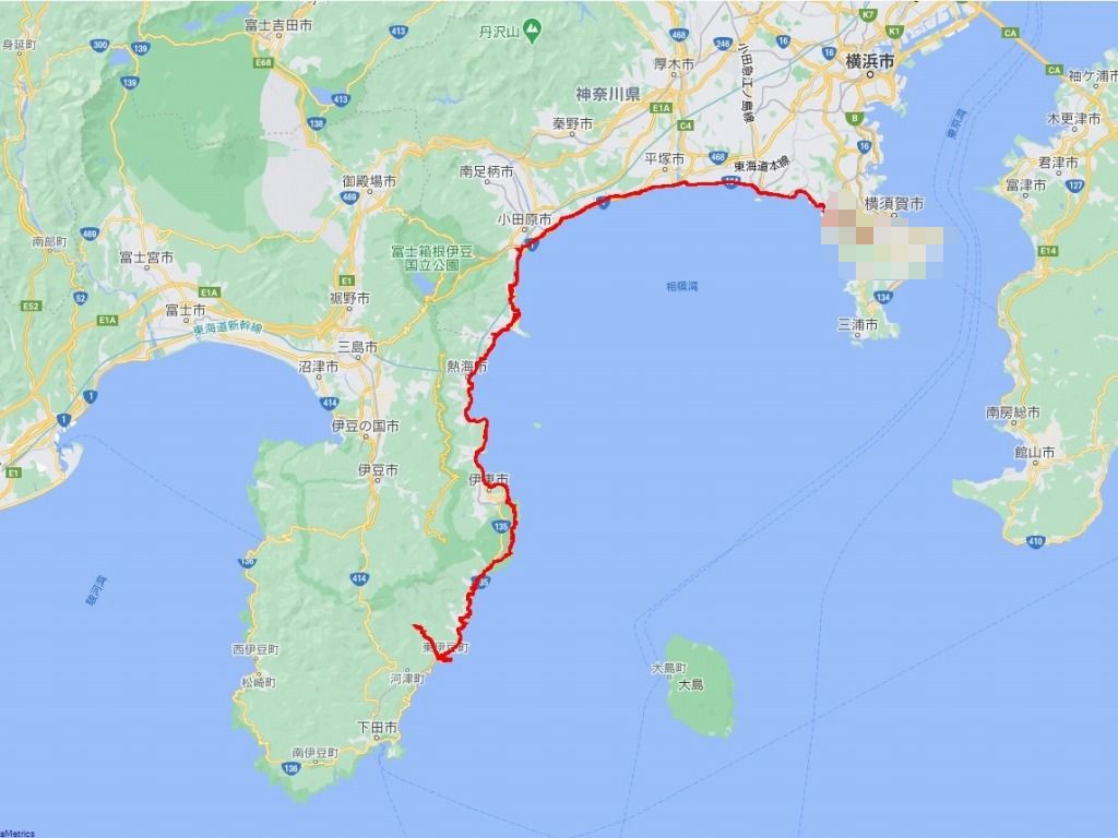 | 2日目の道程:稲取温泉〜細野高原〜湯河原〜小田原〜横須賀(自宅):155.12 km | |