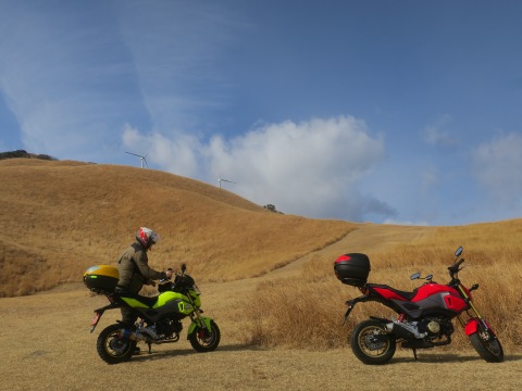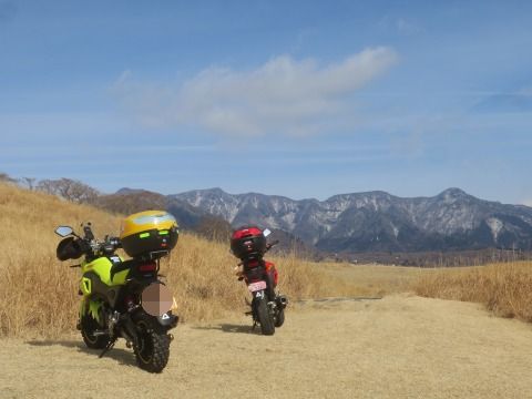 10:32 伊豆とは思えない カメラをグルッと北側に回すと、天城高原方面の山は雪化粧しています。 一昨晩の雨は、山の上の方は雪だったんだね。 この写真だけ見ると、とても伊豆には思えません。 こんな場所に来られるのも小っちゃいGROMならでは、1000ccのGSX-Rじゃここまで入って来られないですね。 |