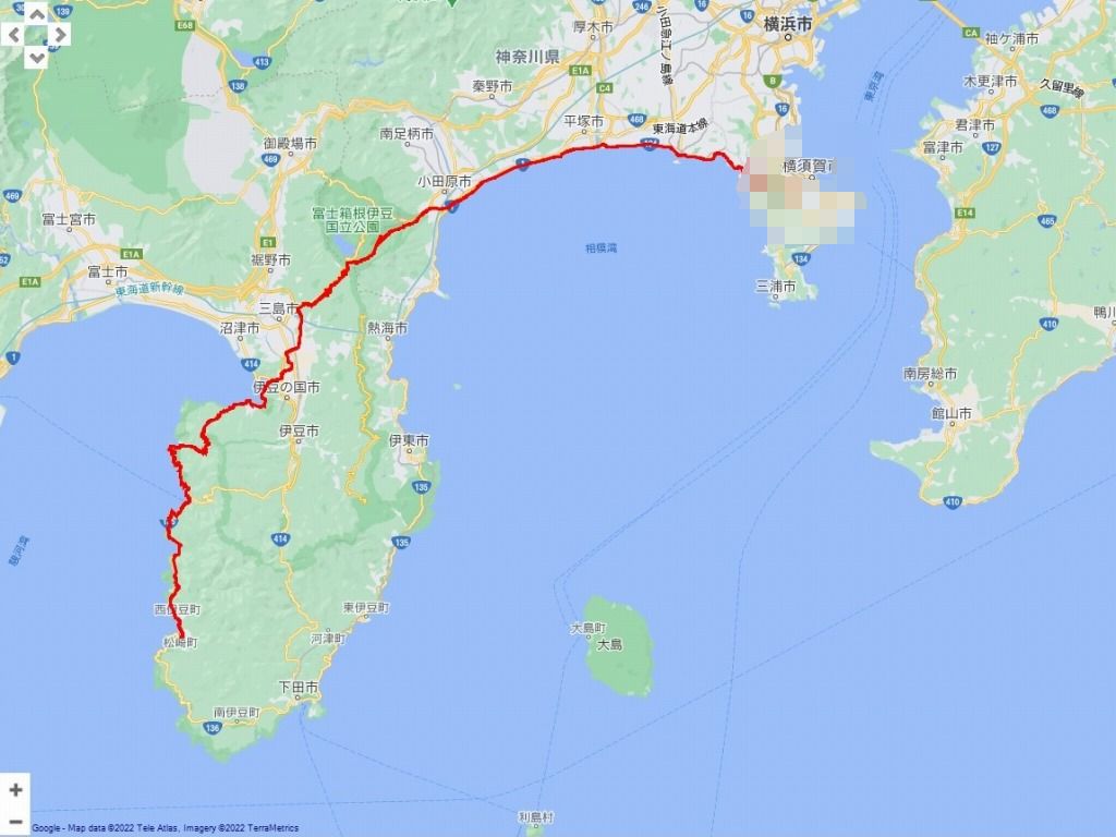 | 午前中の道程:自宅〜(西湘バイパス)〜小田原〜箱根〜口野〜戸田〜土肥〜堂ヶ島〜松崎(さくら):164.33km | |