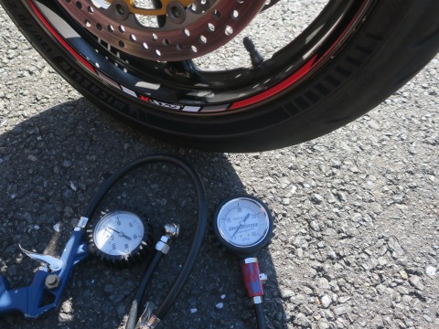 8:34 エアーをチェック ガレージからバイクを引っ張り出して、まずはタイヤのエアーをチェック。 前回、GSX-Rに乗ったのが12月。 2ヶ月以上放っておいたので、タイヤのエアーも下がっているハズ。 と思ってチェックしたら、自分が決めているエアー圧ピッタリ。 そう言えば、11月23日の勤労感謝の日のツーリングの時にちょっと高めに入れておいたんでした。 で、ほぼ3ヶ月放っておいて、ちょうどピッタリ。 前後とも。 |