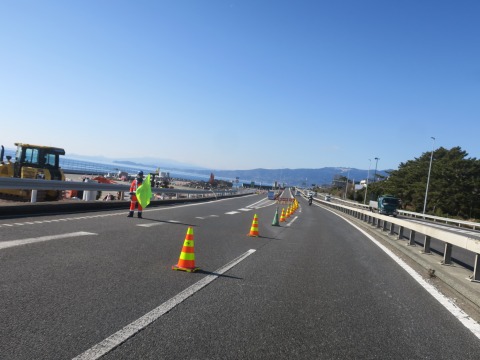 9:33 一車線だけど 国道134号線を七里ヶ浜から大磯まで。 大磯からは西湘バイパスに上がります。 西湘バイパスの災害復旧工事はまだかかるんだねぇ。 ホームページを見ると今年いっぱいみたい。 海側の車線は工事で閉鎖されているけど、山側の一車線は走れるので、市街地を走る信号付きの国道1号線を走るより まだいいかな。 |