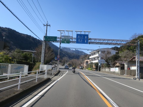 10:03 小田原の市街地は 西湘バイパスを小田原ICで下りて、国道1号線で小田原の市街地を抜けて、箱根新道の入口までやってきました。 この先の分岐点を左に折れて箱根新道に入ります。 小田原ICを下りてからここまでの国道1号線は、小田原の市街地を抜けるまでは片側2車線あるので、バイクだとそれほど苦になりませんが、国道135号線と分岐する早川口の交差点から先は片側1車線で流れが悪いです。 |
