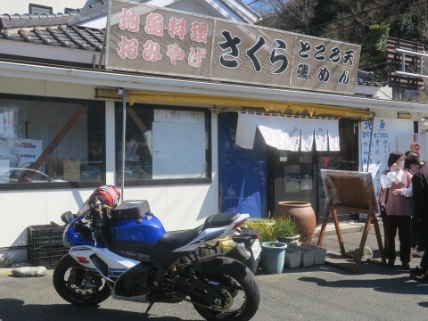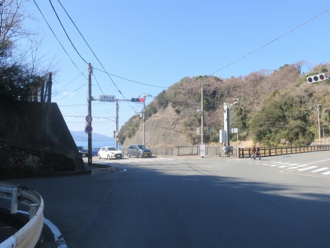 11:34 県道17号沼津土肥線線へ復帰 戸田の市街地から県道17号線を駿河湾に沿って南下し土肥に向かいます。 全体的にまだ桜の季節には早いんですが、早咲きの河津桜とか日当たりのいい場所では開花している樹も見受けられます。 けど、今はお腹が空いていて先を急いでいるので”花より団子”、写真を後回しにして先を急ぎます。 |