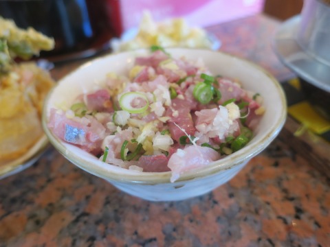 天ぷらを食べようとしたら、あじが運ばれてきました。