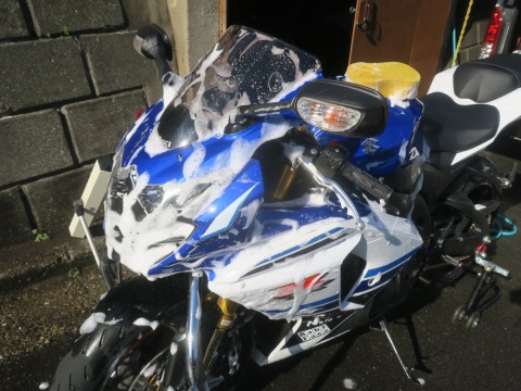14:12 洗車から 昨日は箱根を越えて、西伊豆の松崎までツーリングに行きました。 国道1号線での箱根の峠越えは、路面に白く凍結防止の塩化カルシウム痕。 放っておくとサビの原因になるので、さっそく洗車しちゃいます。 |