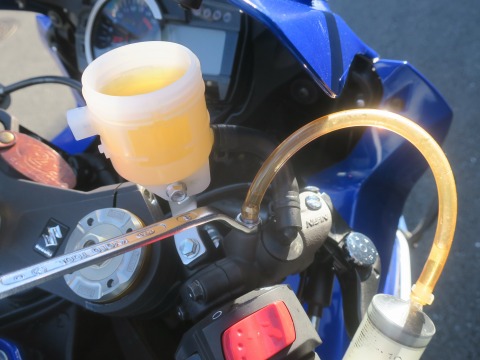 15:24 フルード交換 洗車が終わったら、今日のお題。 昨日、ツーリングの最中に気になったんですが、リザーバータンクを見るとブレーキフルードが経年変化でちょっと着色してる。 整備の履歴を確認すると、交換したのは前回の車検直後の約2年前。 今回4月頭には、5年目の車検を迎えるので、その前に交換しておきたいと、思った次第。 |