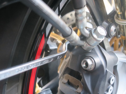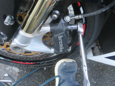 15:33 こんなところにプラグ ブレーキのエアー抜きをするたびに書いているけど、GSX-Rのフロントのブレーキキャリパーのブリーダープラグ、ホイールの内側に付いている。 超、やりずらい。 ブレーキフルードのエアー抜きをするたびに、使いづらくて、次のパーツのグレードアップはキャリパーを交換したいなぁ〜。なんて思ってしまいます。 |