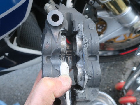 16:43 ブレーキパッドを外して 右側のキャリパーもブレーキパッドを外してピストンを出します。 |