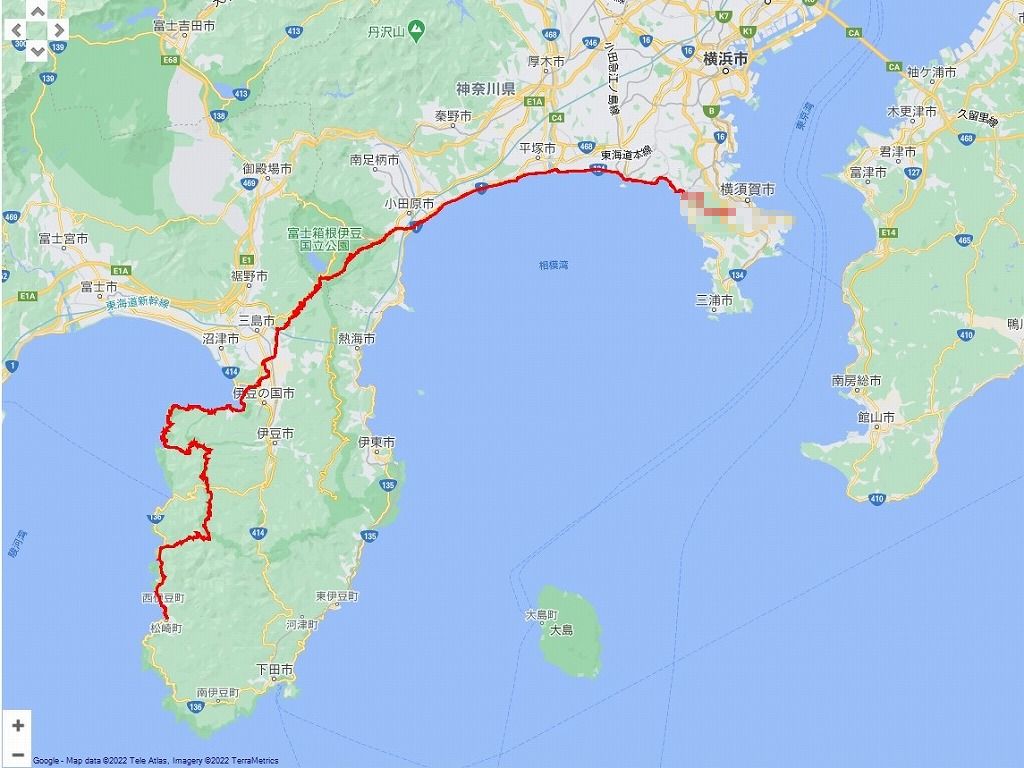 往路の道程:松崎町 〜仁科峠 〜 戸田 〜 大瀬崎 〜 箱根 〜 自宅(横須賀) : 182.93 km