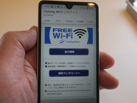 船自体が鉄の壁で囲まれているので、wi-fiがつながるのはどうしてもエントラントとかその周辺になっちゃうのかな。