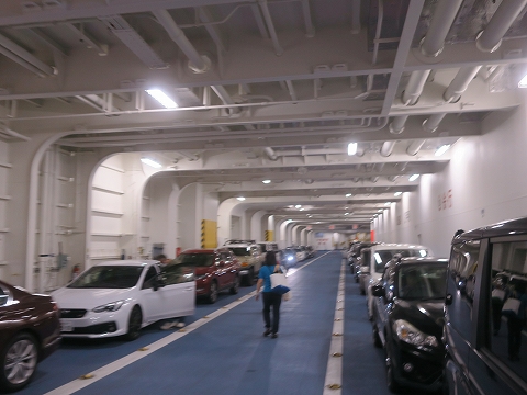 艦内放送で「運転手さんは、車両甲板へ。」 のアナウンスで、車両甲板に下りてきました。