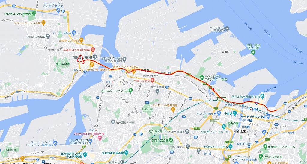 ここまでの道程:北九州市若松台~東龍軒東港店