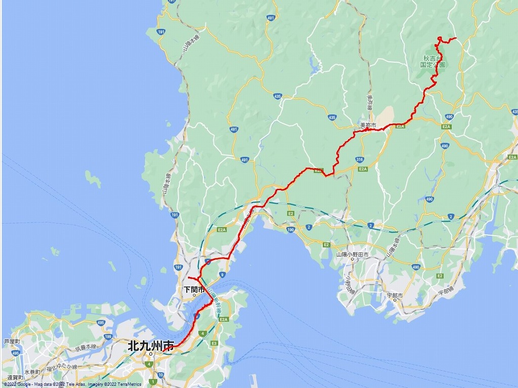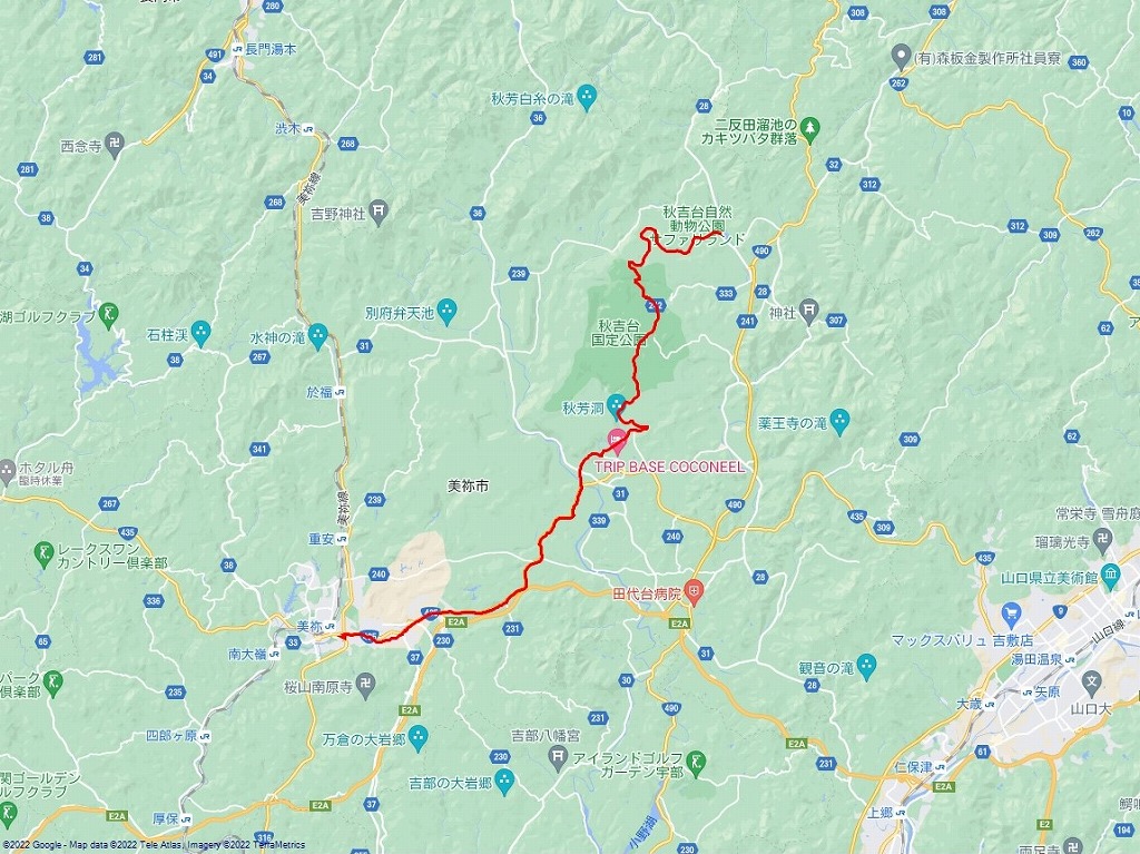 ここまでの道程:秋吉台~美祢グランドホテル