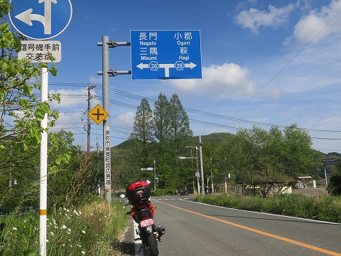 大正洞の駐車場で休憩した後、もう少し県道242号線を走り、県道28号小郡三隅線に突き当たりました。