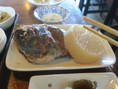 12:00 イサキか? おかずも残り少なくなって終盤戦。 後半に残ったのは、ダイコンと何かのサカナを煮たもの。 このうろこの感じは、どこかで食べた記憶が・・・・。 2018年に西伊豆で食べたイサキかな? ネットの”市場魚介類図鑑”を参照させていただくと、「関東ではイサキは煮付けにしないが、山陰などでは盛んに煮つける。」とあったので、多分正解。 ブリの様に脂のりのりではありませんが、サッパリと煮付けてあって、美味しいです。 旨さ泥棒のダイコンも煮汁を吸ってうまうまです。(笑) |