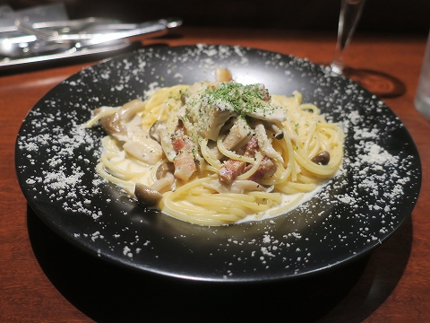 最後に注文したのは、”パンチェッタとキノコのクリーム スパゲティ”。