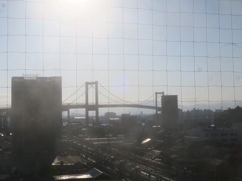 エレベーターホールから見える若戸大橋は今日も健在です。