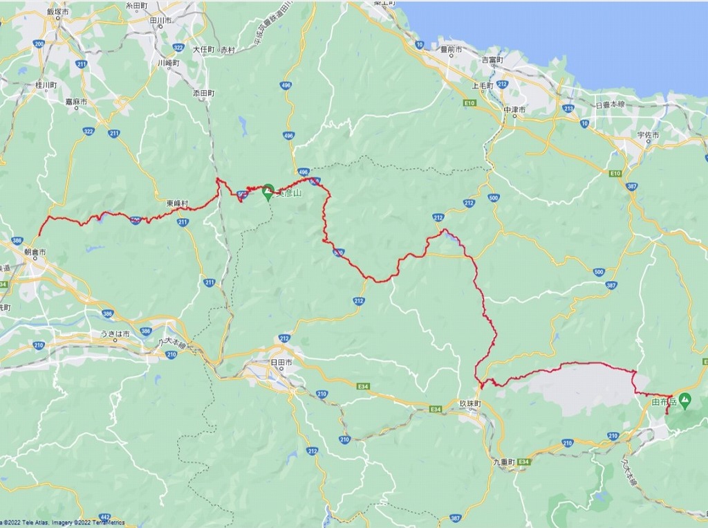 | 午前中の道程:湯布院~日出生台~耶馬溪~英彦山~秋月:127.8km | |