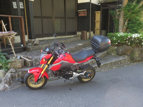 11:17 隙間を走る GROM 小っちゃいので、隙間を走らさせていただきます。 この先の交差点で直進すると国道211号線で陶芸祭りの会場があったみたいです。 自分はこの交差点を左折して、そのまま国道500号線を西走して、昨日とおった小石原川ダム方面に進みます。 |