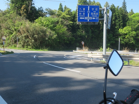 8:40 名無しですが 「名無し道路、いいじゃん!」 貸切り。 景色も良いし、全然ライディングを楽しめます。 この後、名無し道路は大分県道50号安心院湯布院線(あじむ ゆふいん せん)にぶつかります。 |