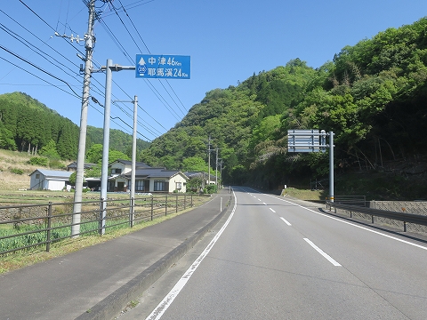 10:22 山に分け入る 国道496号・500号の重複区間をさらに北上。 山深く分け入ります。 このまま国道を進むと山に吸い込まれトンネルでもあるんじゃないかと思うように山が立ちはだかっているように見えますが、トンネルはありません。 ワインディング区間へと変わっていきます。 この辺りまで、国道は山国川の本流に沿って走ってきましたが、山国川は轟川と毛谷村川に分かれます。 国道は毛谷村川に沿って登っていきます。 |