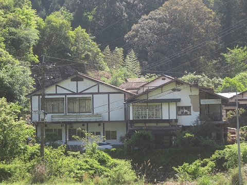 9:33 以前泊まった 一目八景から県道28号線を北上すること2km弱。 山移川の挟んで対岸に見えた建物は、2006年のゴールデンウイークで宿泊した”耶馬溪観光ホテル”。 看板も下ろされていて、もう営業はしてないようです。 |