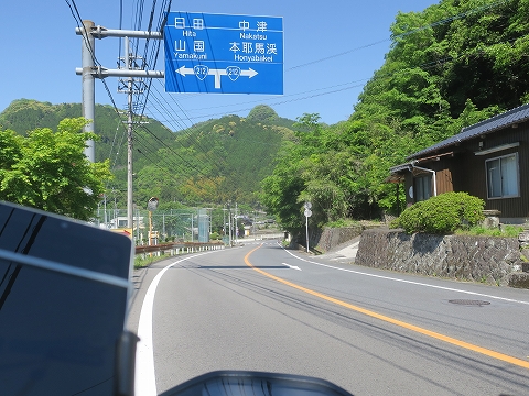 9:15 県道28号森耶馬溪線(もり やばけい せん) 国道387号線を跨いで、県道28号線に入り耶馬溪に向けて北上します。 このゴールでウィーク、出発前の天気予報だと、全然期待できなかったんですが、実際は初日の午前中にちょっと雨が降った以外ずっと好天が続いています。 この時期の晴天は本当に気持ちが良いですね。 |
