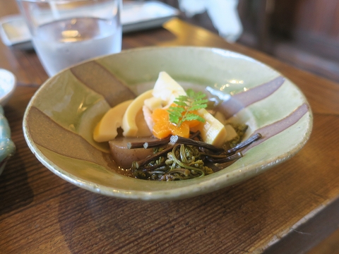 12:12 旬の竹の子 そして、お品書きにあるもうひと品。 ”季節の小鉢”、で竹の子を炊いたもの。 丁寧に仕事がしてあって、美味しいです。 旬の竹の子は美味しいですよねぇ。 何と言っても、竹の子を漢字一文字だと”筍”、草かんむりに旬って文字ですからね。 |