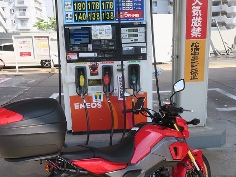 14:57 ガソリンを給油 今晩の宿泊先は、一昨日泊まったルートインホテル。 チェックインの時間は3時からでちょっと時間があるので、ホテルに入る前にGROMにガソリンを給油しておきます。 |