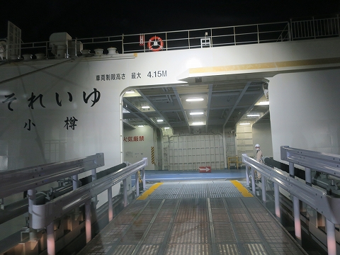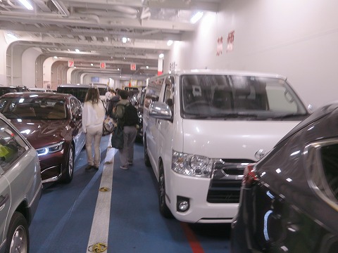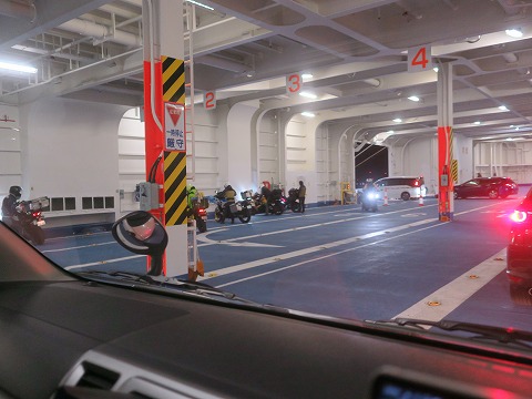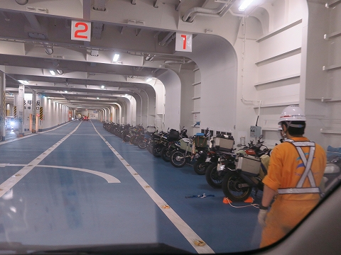 北海道便のフェリーに比べると、収納されているバイクの台数は少ない感じですね。