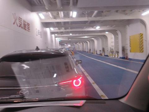 着岸が近くなり、船内放送で、車両デッキへの通行が許可になりました。