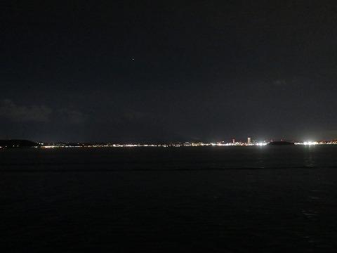 日が暮れて、フェリーは横須賀の沖までやってきました。