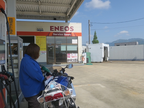 9:41 国道沿いで給油 この先、国道491号線を離れて県道に入る予定。 なので、今日1回目のガソリンを菊川町のスタンドで給油。 前回のツーリング後、ガソリンを入れてなかったので、ガッツリ入りました。 |