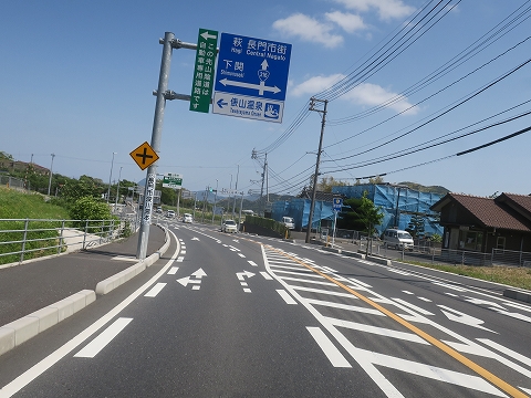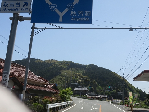 11:07 国道191号線を東進 国道191号線に入り萩に向けて東進を続けます。 この先の分岐は、5/1(日)に美祢方面から来た県道28号線。 萩は道なり左折で国道191号線のままです。 |