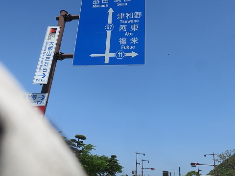 9:40 長門に向けて 小月ICで一般道に下りて、まずは長門方面を目指し、国道491号線を北上します。 国道番号の標識を写すつもりが切れちゃった。(左端にちょこっとだけ痕跡) やっぱりGSX-Rは速いぜ。 (単に反射神経が衰えた。とも言う)(笑) |