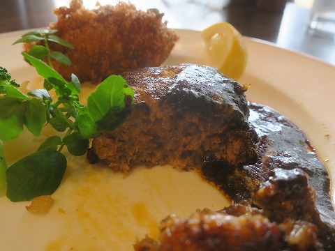 18:03 黒毛和牛 100% それでは、「いただきます。」 ハンバーグは黒毛和牛 100%だそう。 牛肉100%だと得てして固くなりがちですが、ふんわりと柔らかく仕上がっています。 かといって、ありがちなレアーな感じではなくて、しっかりと火が入っているタイプです。 そしてデミグラス ソースが美味いですね。 しっかりと作り込まれた味がします。 |