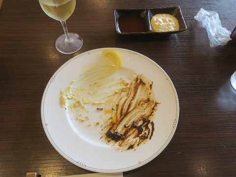 18:15 ペロッと ペロッと食べちゃいました。(笑) 美味しかったね。 で、右上のソースが入った小皿はなに? いつの間にか、グラス ワインもお代わりして”白”になってるし・・・・。 (^_^;) |