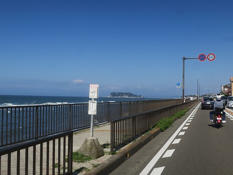 8:36 七里ヶ浜から 逗子海岸から鎌倉の材木座海岸、稲村ヶ崎を過ぎて、七里ヶ浜を西走します。 今日は比較的雲も少なく天気は晴れていますが、夏も近づき湿度が高く視界が遠くはないので富士山は見えませんね。 国道134号線の七里ヶ浜沿線は、台風による被害で道路の護岸を補修していましたが、ほぼ終了しましたね。 以前の様に路側帯もそれなりに確保できているので、渋滞時バイクは前に出ることが出来るようになりました。 夏場は都内を抜けて北ですね。 |