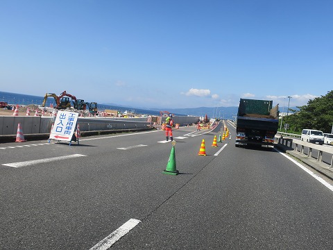 9:08 西湘パーキング 西湘バイパスで西走を続けます。 途中にある西湘パーキングは、波の浸食により護岸が崩壊する恐れがあるため、対策工事中。 使用できません。 逗子海岸からこっち、西に向かう路線、すなわち海側の車線にはトイレに寄れるパーキングスペースやコンビニがありません。 トイレが近い自分には、ちと辛い。(笑) 西湘パーキングの工事は今年の12月までの予定ですが、早く終わらせて、トイレが使えるようにして欲しいです。 |
