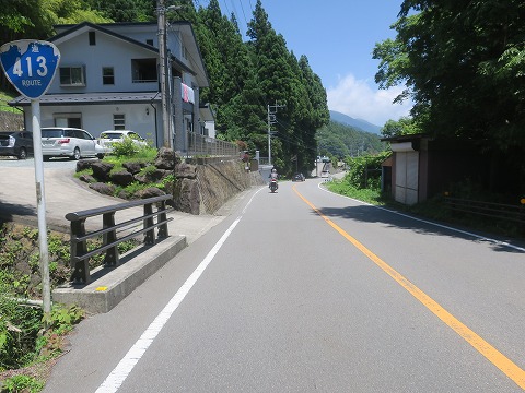 県道518号線を下り、国道413号線にT字路で突き当たります。