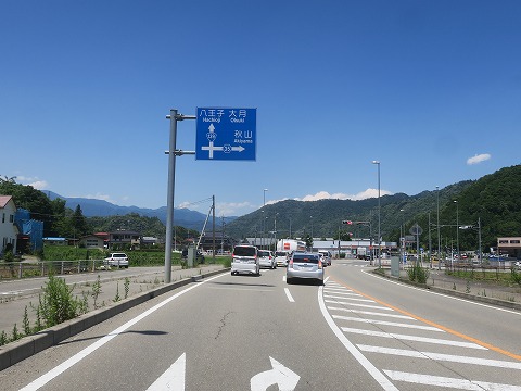 都留市方面に下り、ワインディング区間が終わるとだんだんと民家が増えて都留市の市街地へと入って行きます。