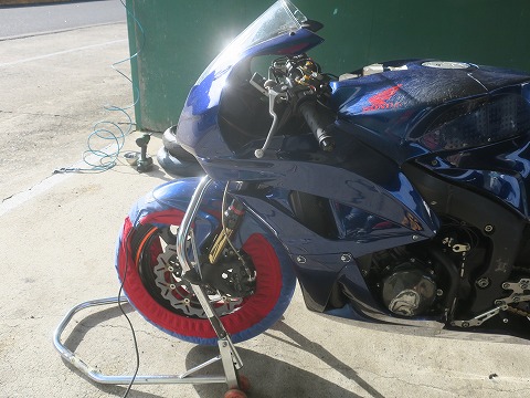 昼食の前にタイヤウォーマーをかけて出かけたので、いつでもスタートできますぜ。
