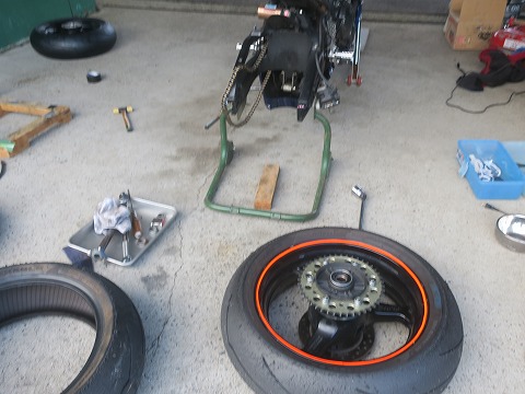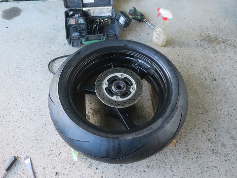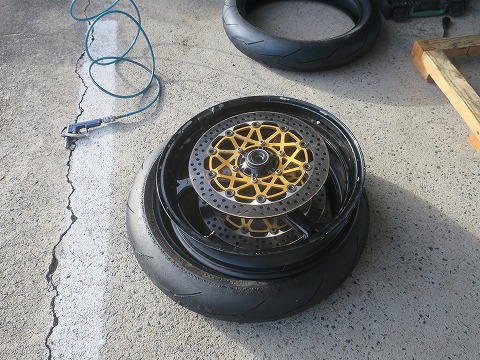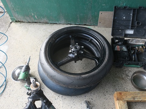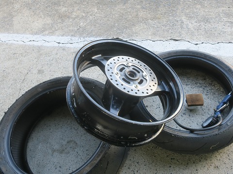 CBRから今まで履いていたリムステッカーを貼ってあるホイールを外しました。