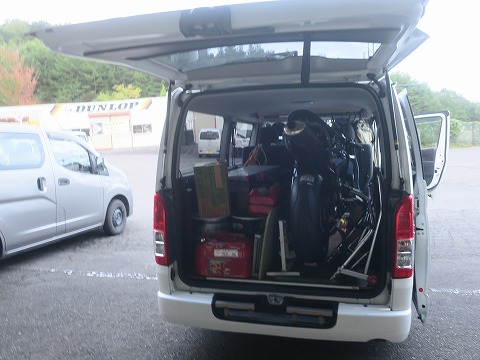 今回は、交換するタイヤを積んできたり、交換用の工具を積んできたので、荷物はちょっと多めでした。