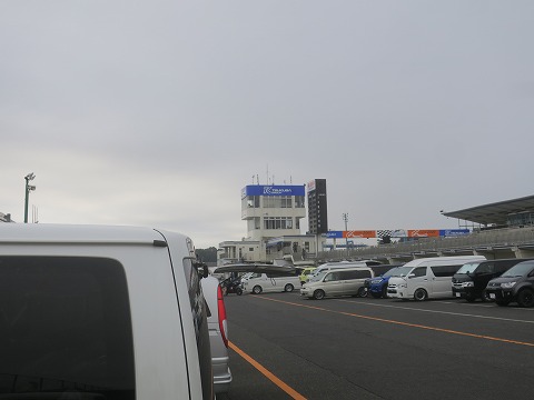 7:25 いつものS字裏に 1コーナー下の地下トンネルをくぐり、インフィールドへ。 いつものようにS時裏の駐車スペースにハイエースを駐車。 土曜日なので、来ているクルマも多いです。 |