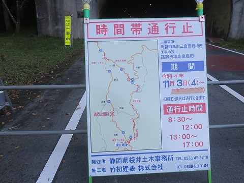 14:08 時間通行止め 通行止めとは言っても、工事時間中だけなので、工事が終われば・・・。 昼の12時〜13時を狙えば、走れるぞ。(笑) まあ、次回来るとしても来年以降になるので、たぶん工事も終わっているでしょう。 |