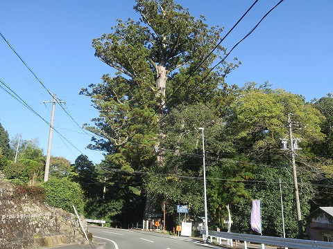 14:38 将軍杉 国道362号線の分岐から3kmほど走ると目の前に現れる巨木。 で、デカい。 これが静岡県指定天然記念物の将軍杉だそう。 樹高は39mほど、13階建てのビルに相当します。 先に進みます。 |